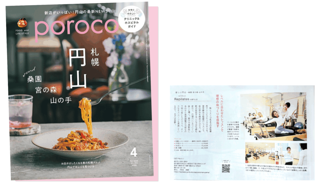 Repilates札幌円山店が、札幌エリアのグルメ・美容・ライフスタイル情報を発信する人気情報誌「poroco 4月号」に掲載されました!